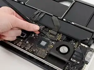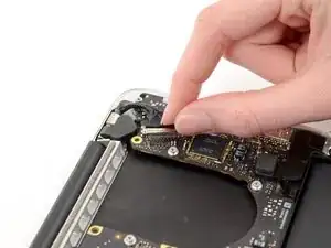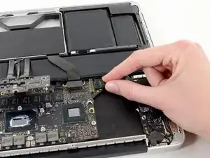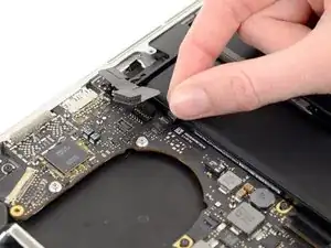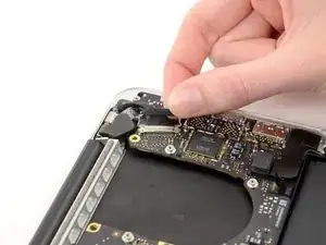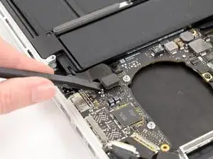 Вытащите разъем кабеля MagSafe прямо из его гнезда на основной плате.