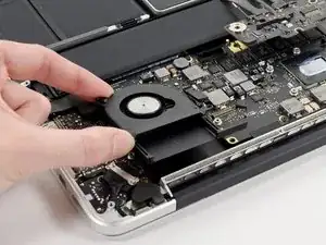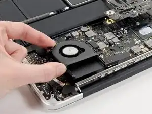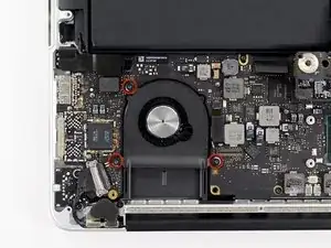 Удалите три винта T5 Torx по 3.1 мм, крепящих левый вентилятор к сборке платы логики.