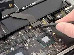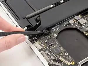Повторите предыдущую процедуру, чтобы отключить кабель трекпада от его разъема на основной плате.