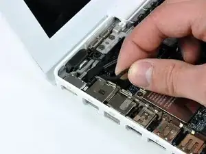 Плата MagSafe теперь полностью освобождена от соединений и может быть отсоединена от логической платы.