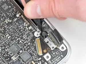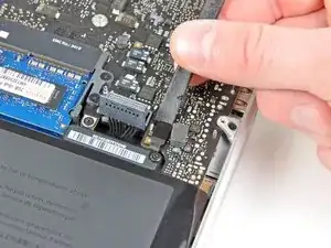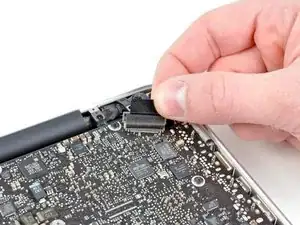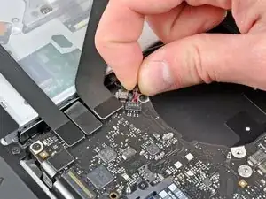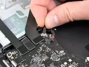 Потяните кабель платы MagSafe DC-In в сторону радиатора, чтобы отключить его от платы логики.