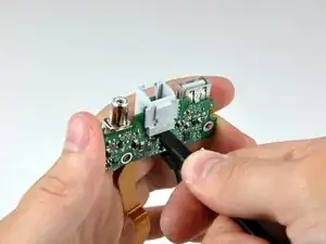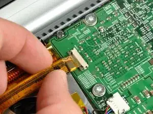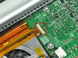 Используйте ногти или наконечник лопатки, чтобы отжать фиксатор ZIF-кабеля от его разъёма.