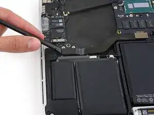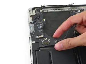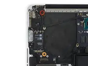 Выкрутите один винт T5 длиной 2,7 мм, крепящий плату AirPort к плате ввода-вывода.
