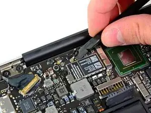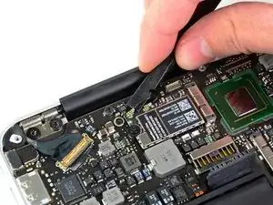 Извлеките плату Wi-Fi/Bluetooth из MacBook Air.