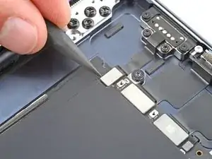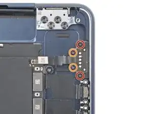 Используйте отвёртку P5 pentalobe, чтобы вывернуть четыре винта длиной 6.4 мм, фиксирующие нижнюю крышку.