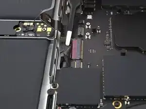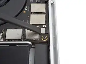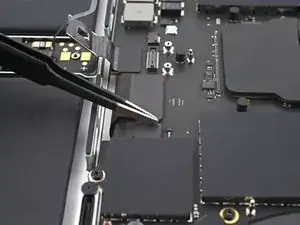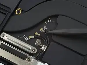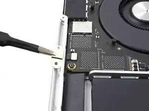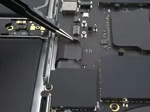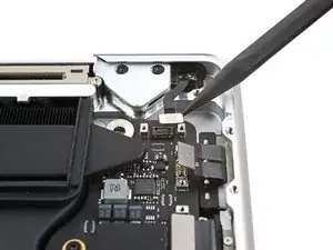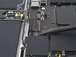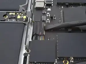 Используйте лопатку, чтобы поддеть и отсоединить нажимной разъем левого порта USB-C.