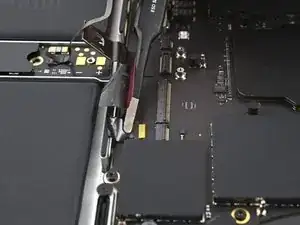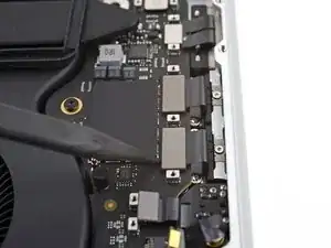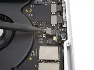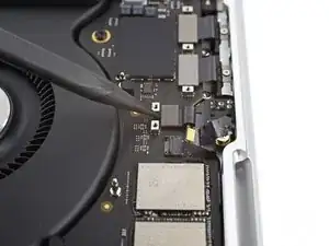 Повторите предыдущую операцию по отключению для оставшегося нажимного разъёма в верхнем левом углу логической платы.