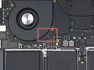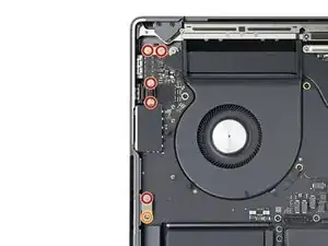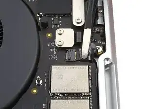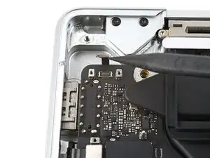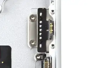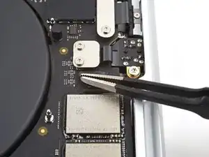Используйте отвертку Torx Plus 5IP, чтобы выкрутить два винта 2,6 мм, фиксирующие порт MagSafe.