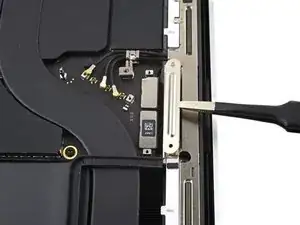 Используйте лопатку, чтобы аккуратно приподнять фиксирующую лапку на ZIF-разъёме кабеля микрофона.