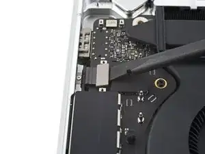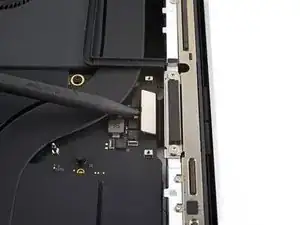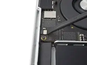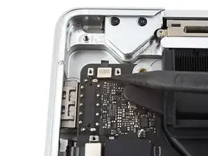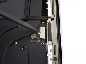 Используйте лопатку, чтобы поддеть и отключить нажимной разъём порта MagSafe.