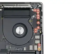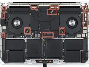Используйте отвёртку P5 Pentalobe, чтобы удалить восемь винтов, крепящих нижнюю крышку: