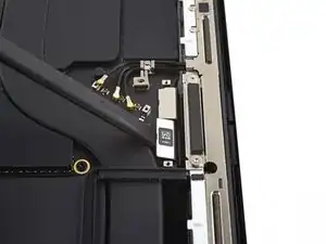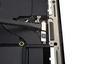Используйте отвёртку Torx Plus 3IP, чтобы выкрутить четыре винта 3,5 мм, фиксирующие крышки кабелей экрана.