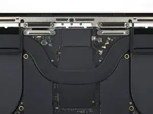 Установите её на место и совместите скользящие защёлки возле петли экрана. Надавите и сдвиньте крышку в сторону петли. Она должна перестать скользить, когда защёлки войдут в зацепление.
