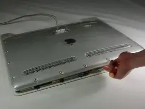 Переверните Cinema Display так, чтобы он лежал на лицевой стороне, а ножки были обращены от вас.