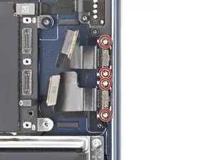 Используйте отвертку Torx Plus 5IP, чтобы снять четыре винта длиной 3.7 мм, крепящие порты Thunderbolt.