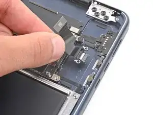 Убедитесь, что кабель на верхнем левом крае динамика не зацепился за плату логики, иначе он может порваться.
