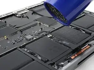 Если у вас нет iOpener, вы можете использовать фен, чтобы слегка нагреть кабель. Будьте осторожны, чтобы не перегреть аккумулятор, так как это представляет опасность возгорания.