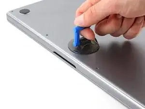 Поднимите присоску, чтобы создать зазор между нижней крышкой и корпусом.