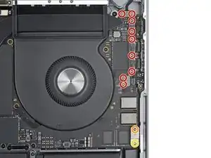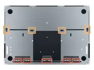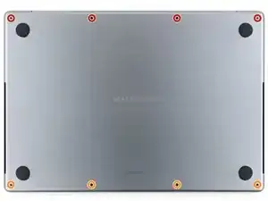 Используйте отвёртку P5 pentalobe, чтобы выкрутить восемь винтов, фиксирующих нижнюю крышку: