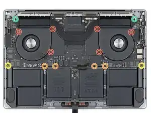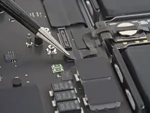 Разрядите аккумулятор MacBook до уровня ниже 10% перед началом ремонта. Заряженный аккумулятор может загореться, если его повредить во время ремонта.