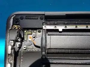 Это снимает первый из скрытых защёлок, фиксирующих нижнюю крышку к шасси. Вы должны почувствовать щелчок и услышать, как защёлка освобождается.