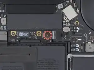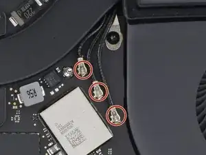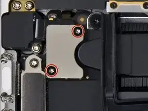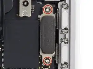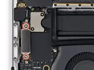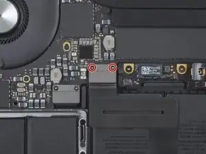 Используйте отвёртку под Torx T3, чтобы удалить три винта длиной 1,9 мм, крепящих материнскую плату.