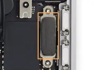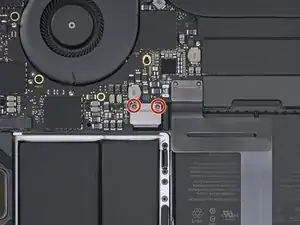 Используйте отвёртку T5 Torx, чтобы открутить плоский винт длиной 3,7 мм, фиксирующий разъём питания батареи.