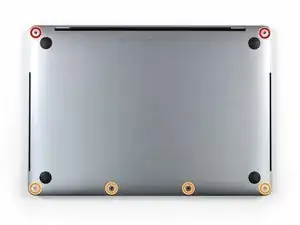 Открутите шесть винтов, крепящих нижнюю крышку, с помощью отвёртки P5 Pentalobe: