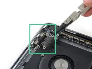 Аккуратно отключите гибкий кабель разъёма аудиоразъема с помощью лопатки.