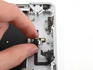 Используйте лопатку, чтобы аккуратно приподнять фиксирующий язычок на ZIF-разъёме кабеля микрофона.
