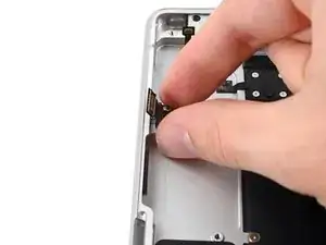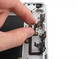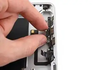 Используйте лопатку, чтобы приподнять и отсоединить нажимной разъём порта MagSafe.