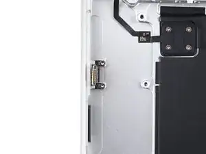 Используйте лопатку, чтобы приподнять и отсоединить контактный разъем левого USB‑C порта.