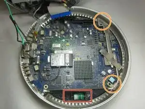Очистите и заново нанесите термопасту на участки радиатора, обведённые оранжевым. См. шаг 15 в Замена жёсткого диска iMac G4 17" Model M9168LLA для лучших фотографий и описания.