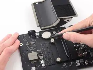 Используйте это руководство, чтобы извлечь PRAM-батарею.