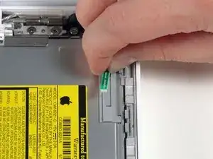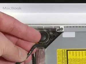 Удалите винт Phillips #00 длиной 2 мм, крепящий задний угол оптического привода.