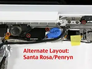 Если у вас MacBook Core 2 Duo Santa Rosa/Penryn, винты расположены в другом месте.