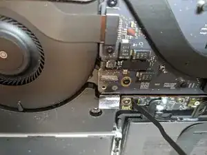 Если он случайно коснётся гнезда во время ремонта, это может повредить ваш MacBook Pro.