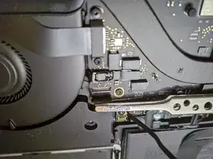 Используйте отвертку T5 Torx, чтобы вывернуть панкейк-винт 3.7 мм, фиксирующий разъём питания батареи.