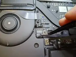 Вытащите гибкий шлейф из разъёма с помощью пинцета.