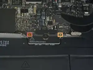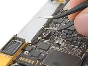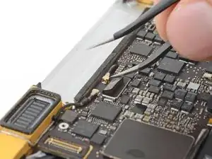 Снимите один винт T5 Torx 2,9 мм, фиксирующий разъём батареи на плате.