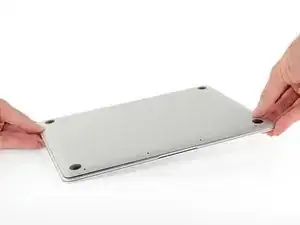 Аккуратно переверните MacBook так, чтобы нижняя крышка лежала ровно.
