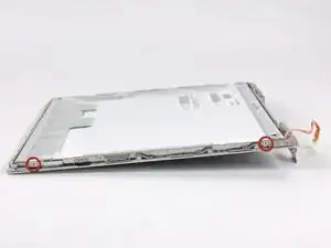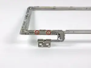 Удалите два винта Torx T6 в нижнем левом и нижнем правом углах дисплея, крепящие заднюю рамку к сборке дисплея.