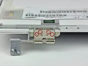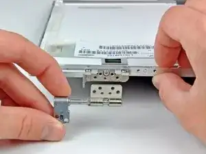Сдвиньте узел защёлки с каждого шарнира и снимите его с дисплея.
