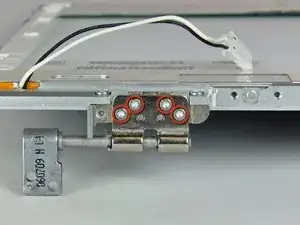 Удалите четыре винта Torx T6, фиксирующие правую петлю муфты к передней рамке дисплея.