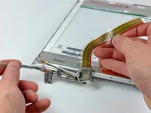 Удалите маленький винт с крестообразным шлицем, расположенный за кабелем данных дисплея.