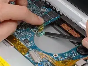 Отключите кабель правого термодатчика от материнской платы, поддев его лопаткой и поднимая вверх.
