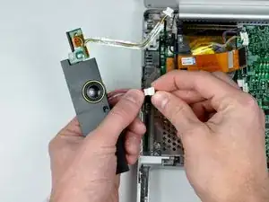 В этом руководстве показано, как снять правый вентилятор с PowerBook.