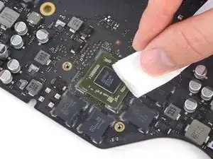 Как и ранее, используйте безворсовую салфетку или кофейный фильтр и подходящие жидкости для очистки и подготовки поверхности GPU.