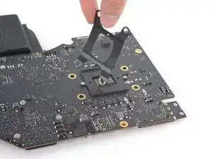 Удалите два винта T8 длиной 5,4 мм, крепящие тепловую трубку к материнской плате.
