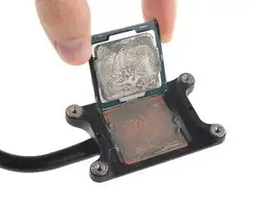 Учтите, что процессор, скорее всего, останется приклеенным к нижней части радиатора при его подъёме. Будьте осторожны, чтобы не повредить его.